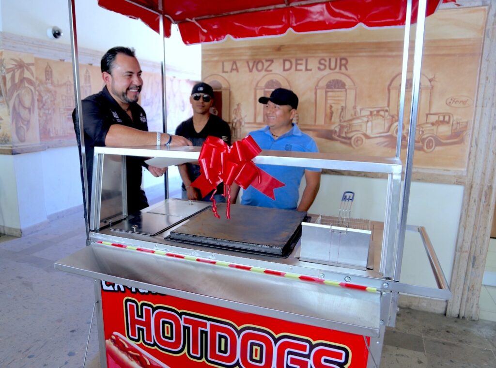 La primera entrega consistió en un carrito para la elaboración de hot dogs y hamburguesas, beneficio otorgado al señor Carlos Santiago Carranza, vecino de Cabo San Lucas, quien solicitó el apoyo a través de la Dirección de Atención Ciudadana. El beneficiario agradeció la respuesta del alcalde, destacando que este apoyo representará una fuente de ingreso para él y su familia.