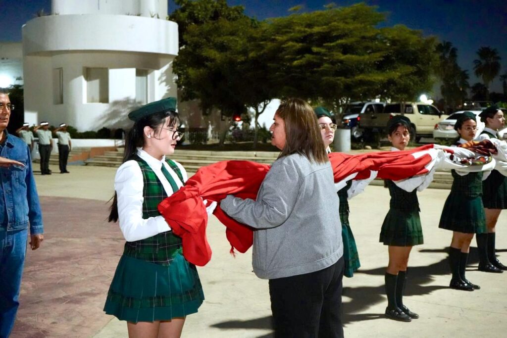 Como parte del programa, estudiantes de la Escuela Secundaria Técnica No. 16 realizaron una presentación de las banderas históricas que han marcado las distintas etapas de la transformación del país, desde el estandarte de la Virgen de Guadalupe utilizado por Miguel Hidalgo al inicio de la Independencia, hasta la Bandera Nacional vigente, adoptada oficialmente en 1968 y ratificada por la Ley sobre el Escudo, la Bandera y el Himno Nacionales en 1984. Asimismo, se contó con la participación de alumnas y alumnos del Cobach No. 04.