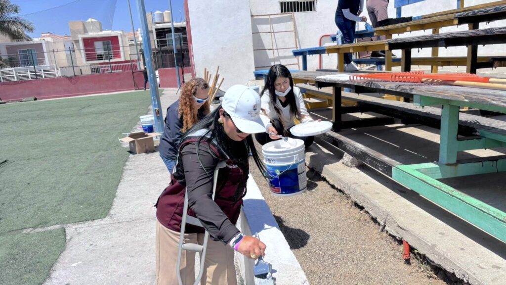 Durante la jornada se realizaron labores de limpieza, así como pintura en paredes, gradas y juegos infantiles, atendiendo diversas necesidades detectadas en el sitio, ubicado en la calle Camino al Faro.