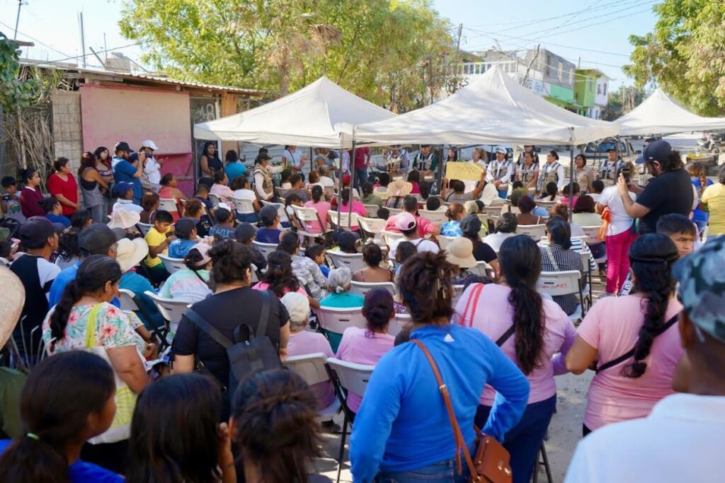 Los Cabos, Baja California Sur.– La Delegación de Cabo San Lucas, encabezada por Karina de la O Uribe, realizó una Jornada Social en la colonia Real Unidad, donde se beneficiaron aproximadamente 200 familias mediante la entrega de apoyos alimentarios.