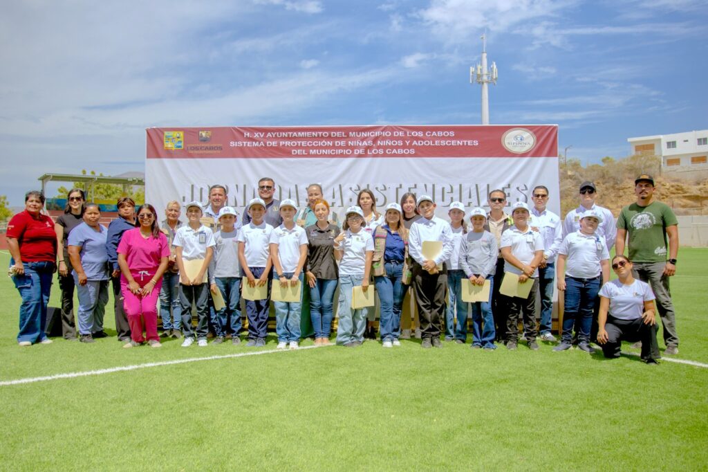 Los Cabos, Baja California Sur.– El XV Ayuntamiento de Los Cabos, a través de la Secretaría Ejecutiva del Sistema de Protección Integral de Niñas, Niños y Adolescentes (SIPINNA) de Los Cabos, llevó a cabo la jornada asistencial “Creciendo con Amor” en el campo de fútbol ubicado en el vado de Santa Rosa, con el objetivo de promover los derechos de niñas, niños y adolescentes.