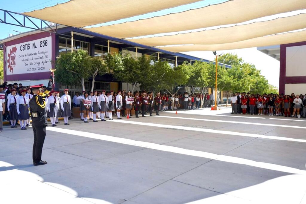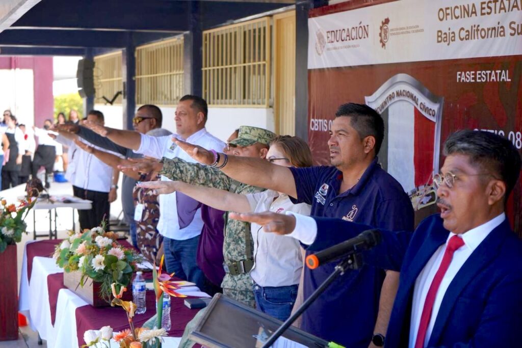 Durante la ceremonia se rindieron honores al lábaro patrio, destacando su valor como símbolo de identidad nacional y unidad, con la presencia de docentes, personal administrativo y alumnado de distintos planteles de Baja California Sur.
